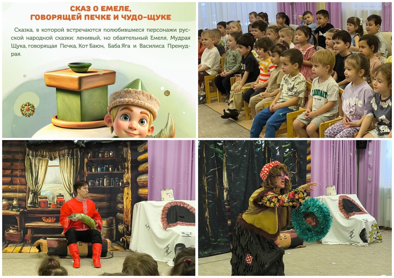 У нас в гостях была театральная студия "Бала"со спектаклем "Сказ о Емеле, говорящей печке, и чудо-щуке"