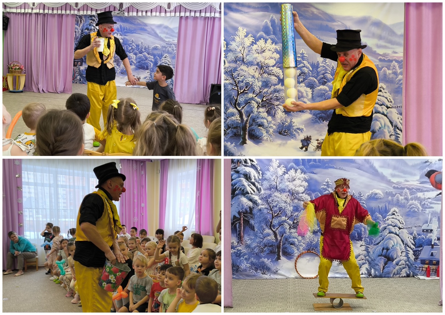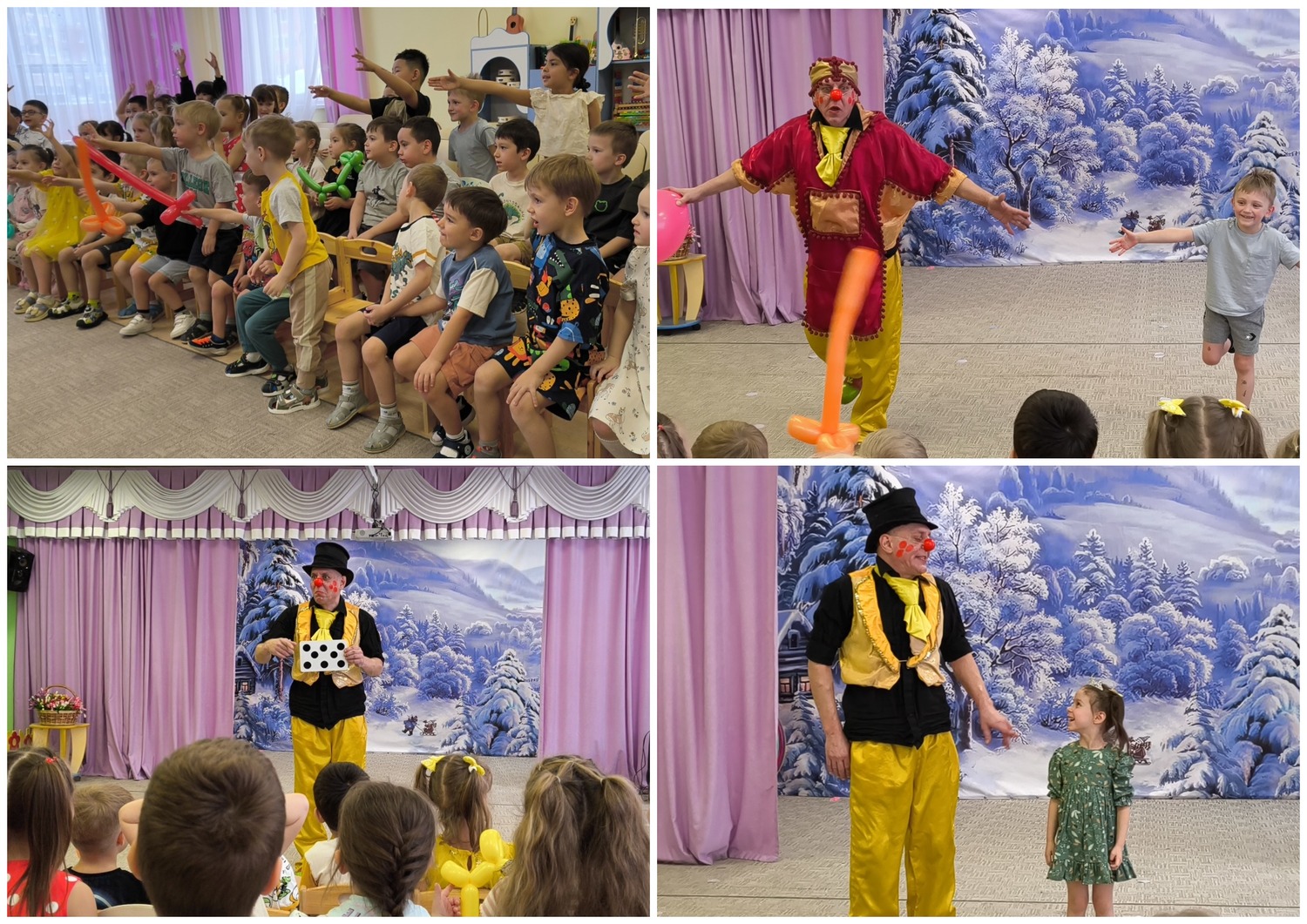 Сегодня в гости к ребятам пришёл весёлый клоун, который развлекал детей разнообразными играми.
